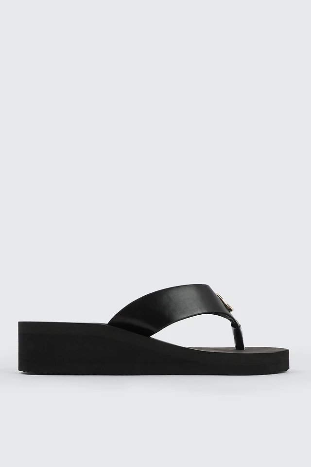 Ardene Wedge Flip-Flops with Metallic Detail Sandals in Black | Size | Faux Leather | Eco-Conscious