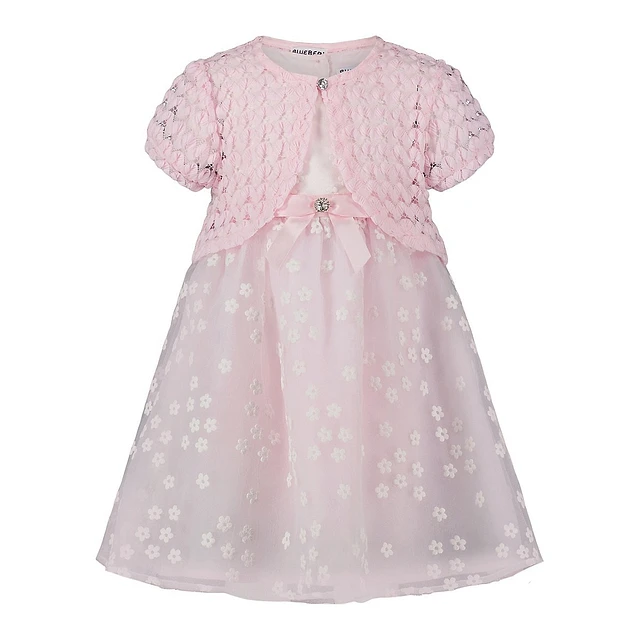Baby Girl's 2-Piece Floral Flocked Dress & Crochet Shrug Set