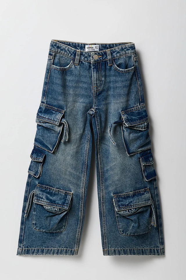 Pantalon d'entraînement cargo à jambe large avec bande de taille double pour fille
