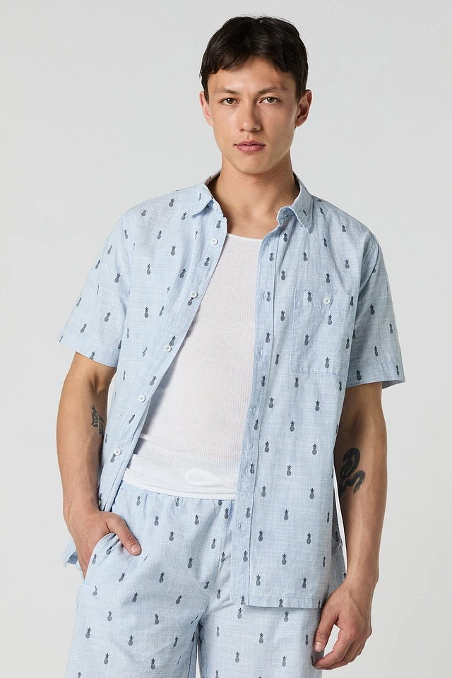 Printed Short Sleeve Button-Up Top