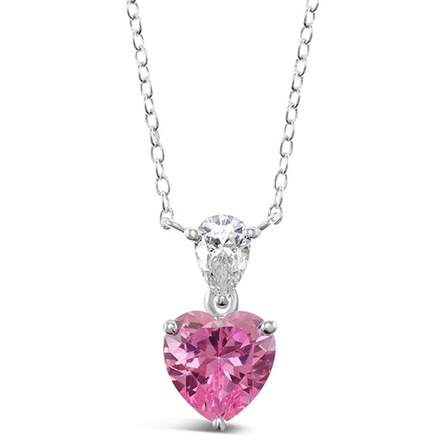 Sterling Silver Pink Heart Cubic Zirconia Necklace 153480