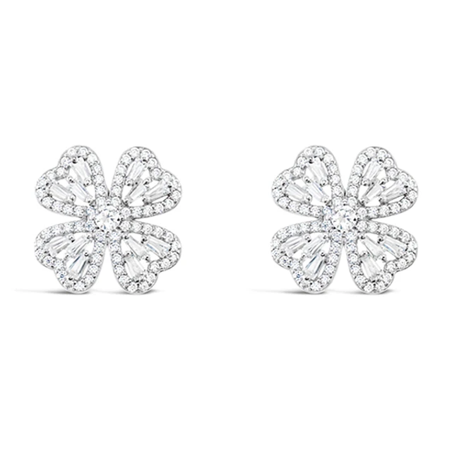 Sterling Silver  Flower  Cubic Zirconia Earrings 155064