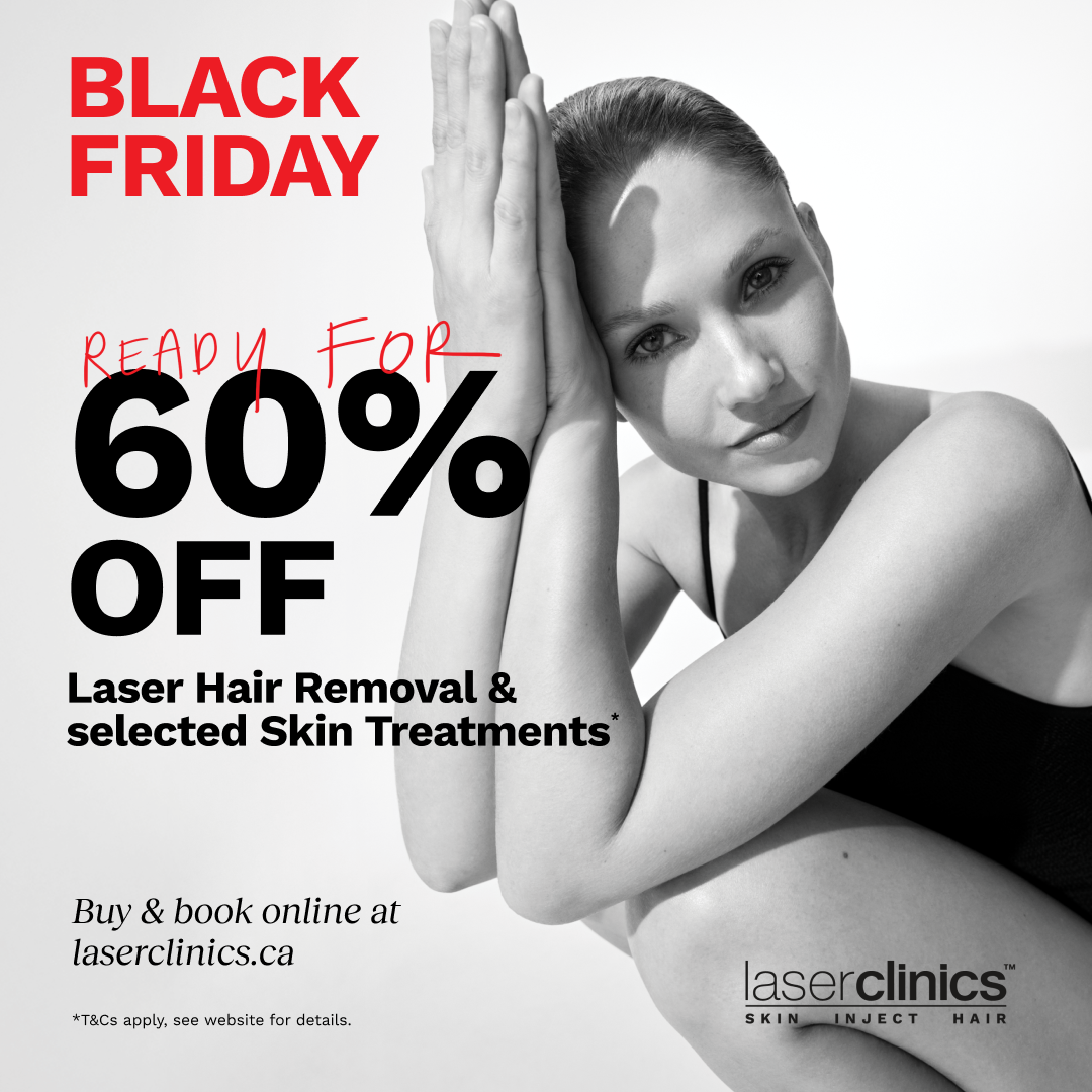 Mon, 17 Nov 2025 - Mon, 1 Dec 2025Enjoy our Black Friday Sale 60% off Laser Hair Removal & selected Skin Treatments*Black Friday - The Biggest Sale of the Year
